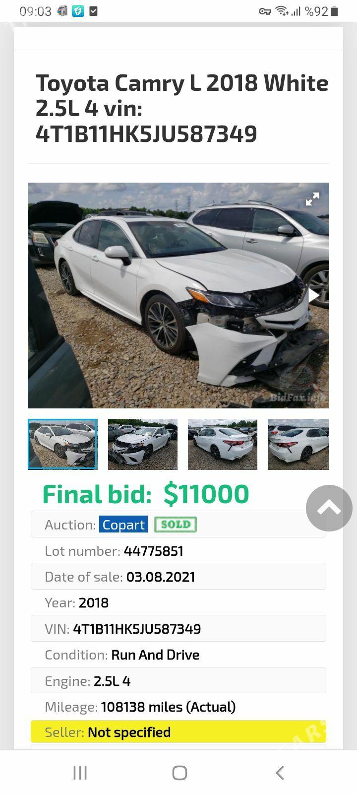 | Марка и модель : Toyota Camry |