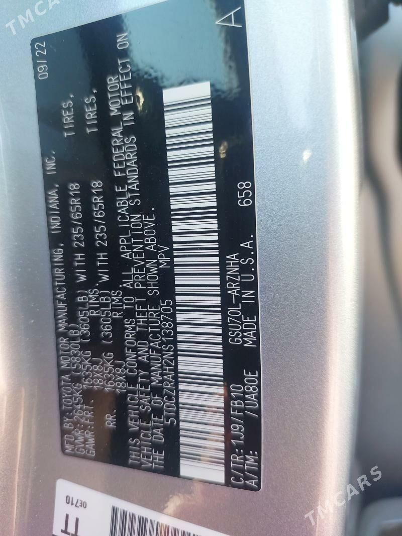| VIN : 5TDCZRAH2NS138705 |
