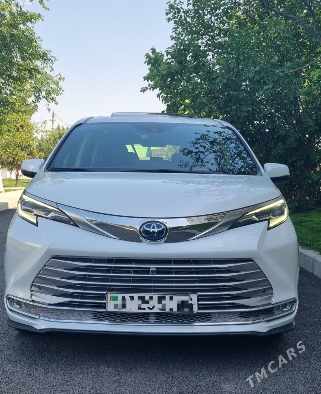 toyota siyenna platinum 2022ÿ reñki rodnoÿ ak, degim ÿok airbaklar çykmadyk hemmesi ÿerinde,galagramma jbl audio sistema,360 camera, bezprowodnoy zarÿatnik uly manitor patalok telewizor bagajy gapylary aÿakda açylyp ÿapylÿar ahli funksiÿalary bar,maşyn taze gelen arassa hiç hili kemi ÿok. oñşuk bar!