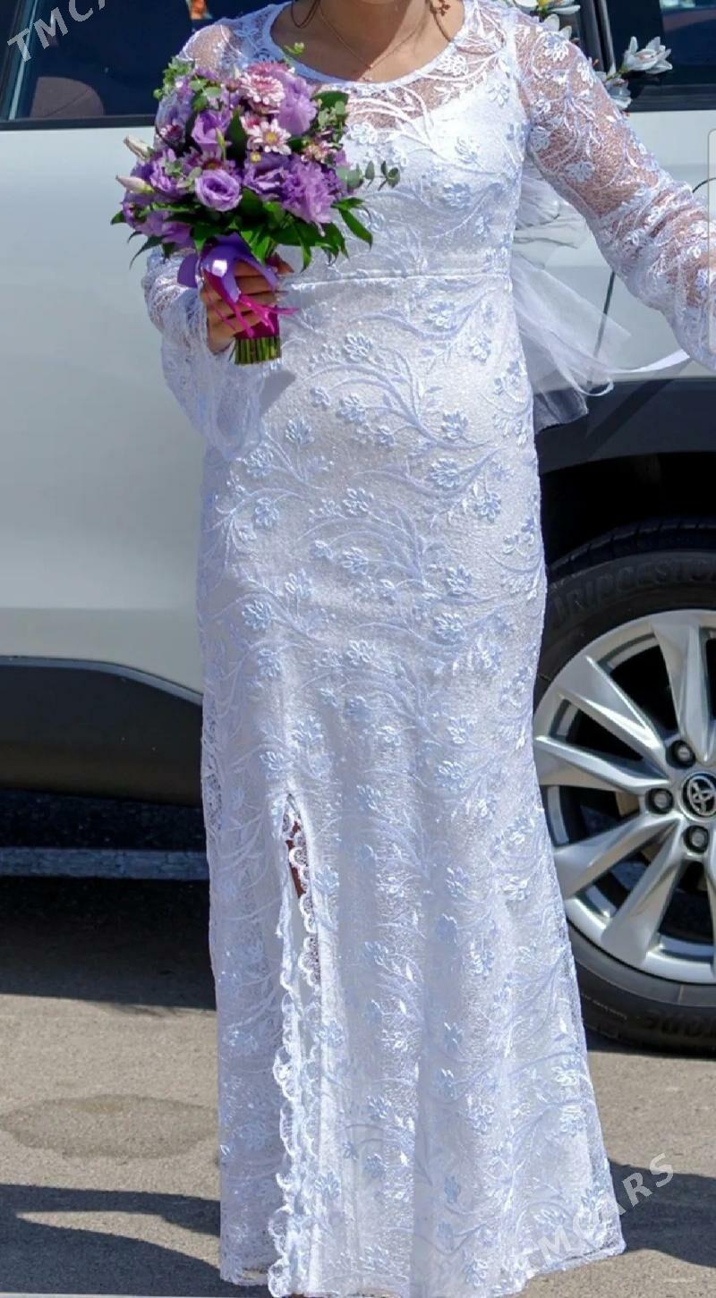 7 sag öňСвадебное платье А-силуэта со съёмной юбкой. Модель с длинными кружевн...