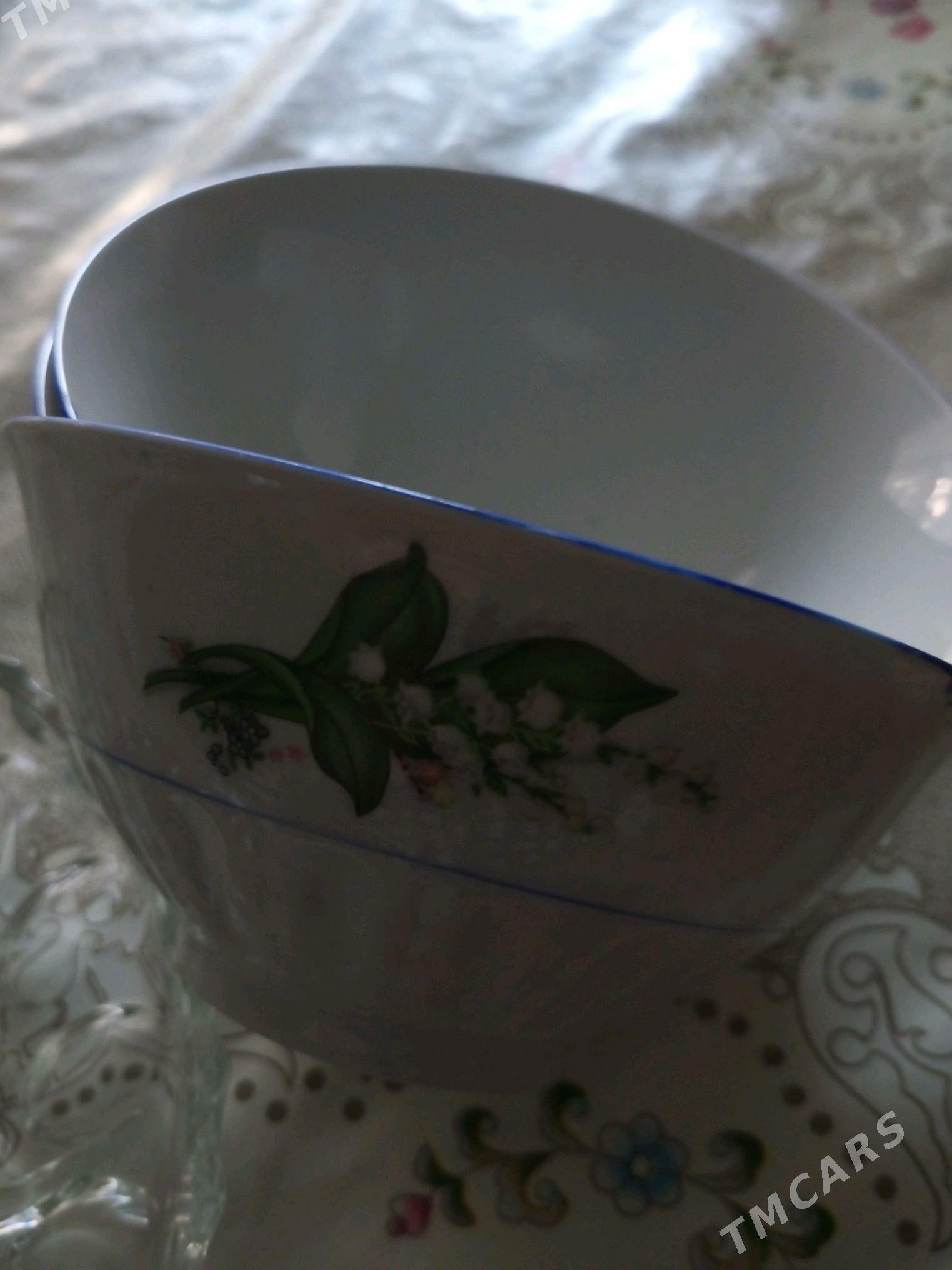 тарелка, стаканы, кесе.