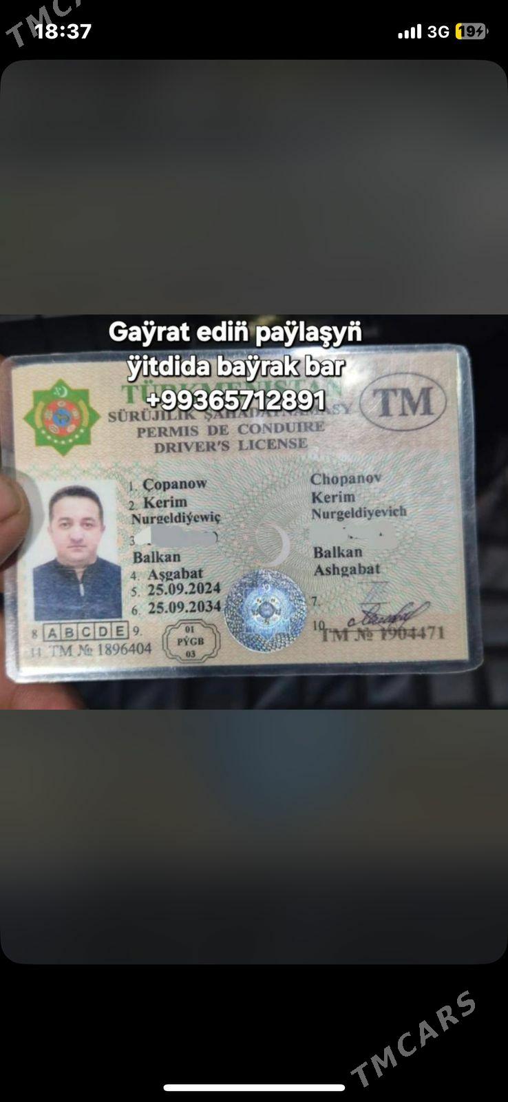 düýnPrawa tehpaspor gurat hat yitdi maşyn nomeri 9184 Fort Allajanow Şatly...