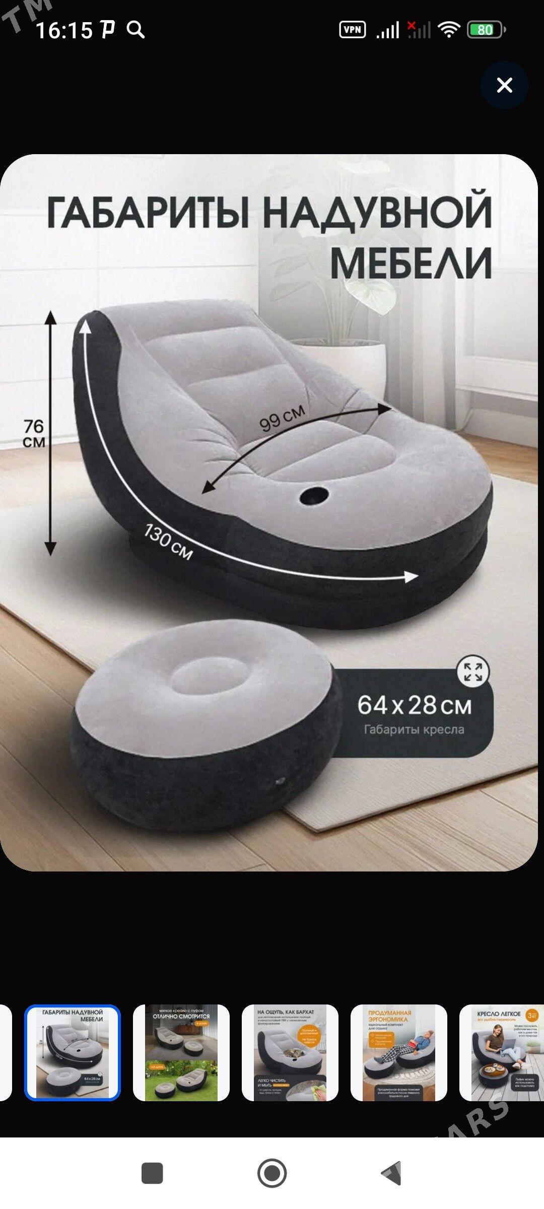 Надувное кресло с пуфом