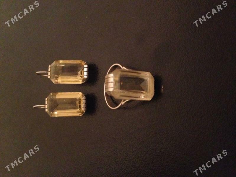 Серьги и кольцо из позолоченного серебра. Цитрин