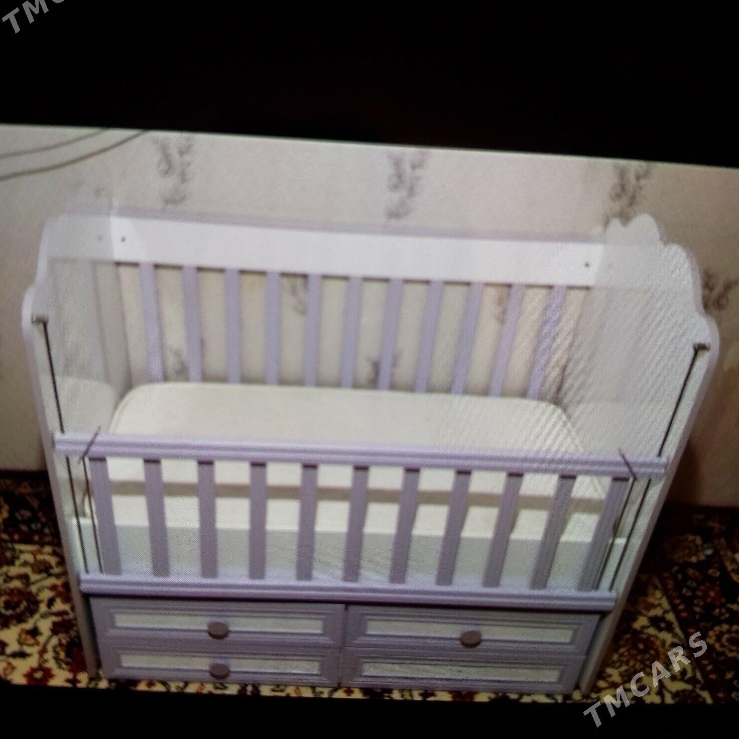 3 sag öňДетская кроватка -люлька, качается. 4 шкафчика снизу на одном шкафчике...