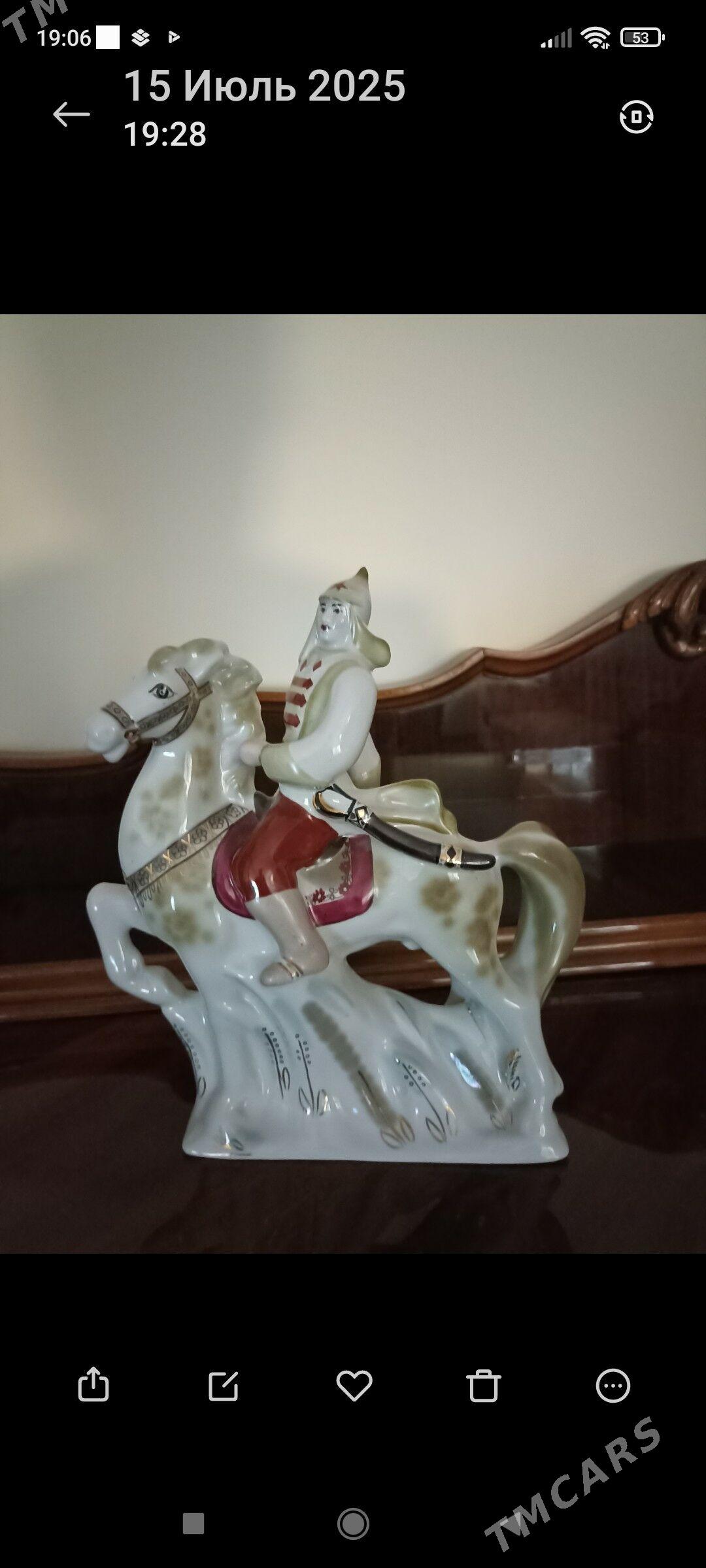 2 sag öňБелая лфз лошадь,бездефектов ,колокольчик с наездником 2500м.подкова 6...