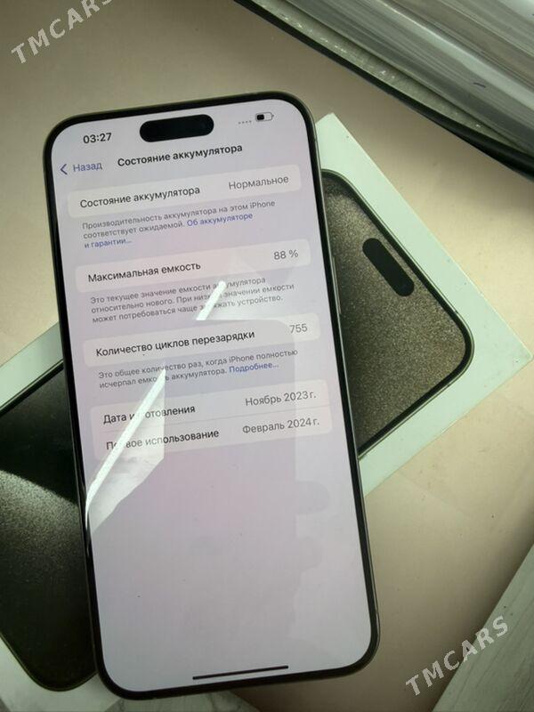 şu wagtiPhone 15 Pro Max 88256gb Titan renk. Kem yok. Karopka Usb bar. Yagd...