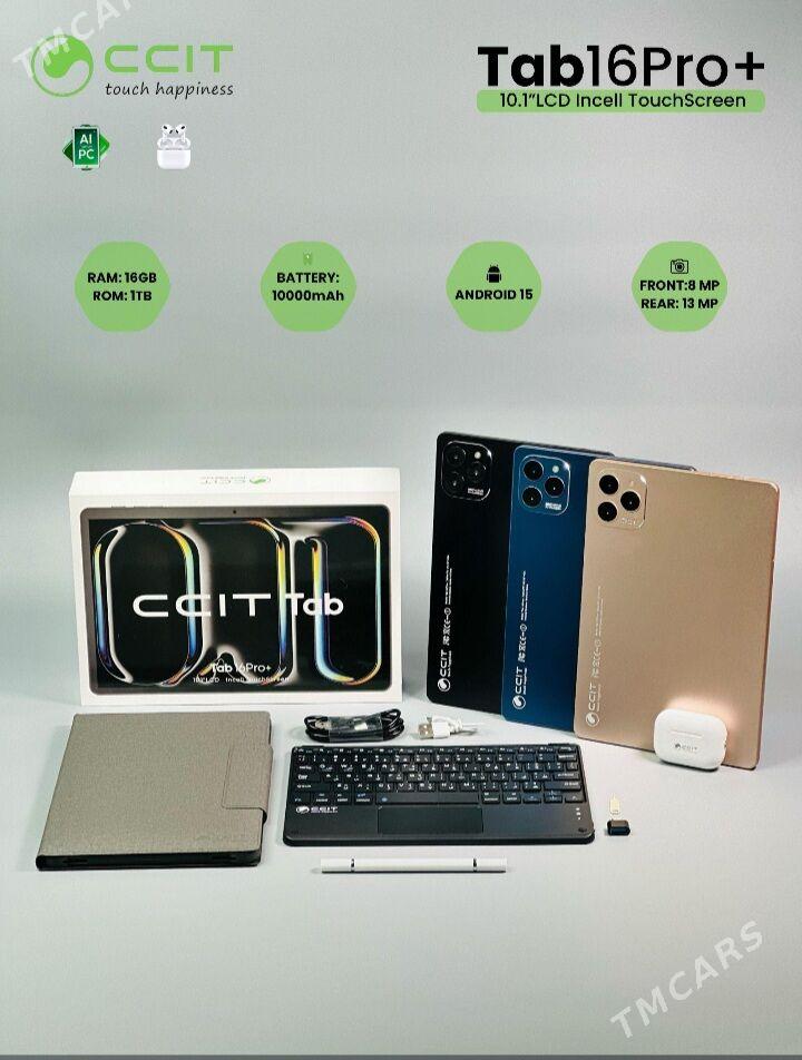 15 sag öňPLANŞET CCIT 16 PRO+ 16/1TB EKRAN 10inc SIM1/2 IÇINDE KOMPLEKT KLAÝWA...