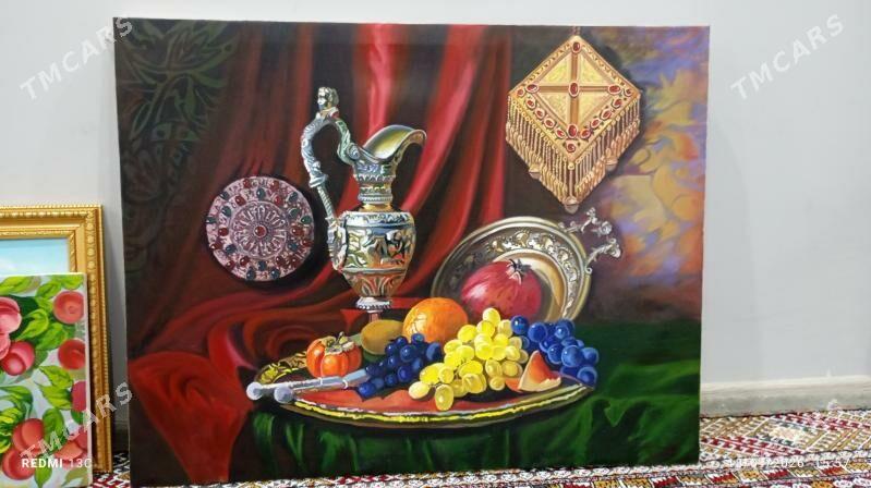 10 sag öňowadan natýurmort çekilen holst arginal mataň ýüzüne razmer 30/75 owa...