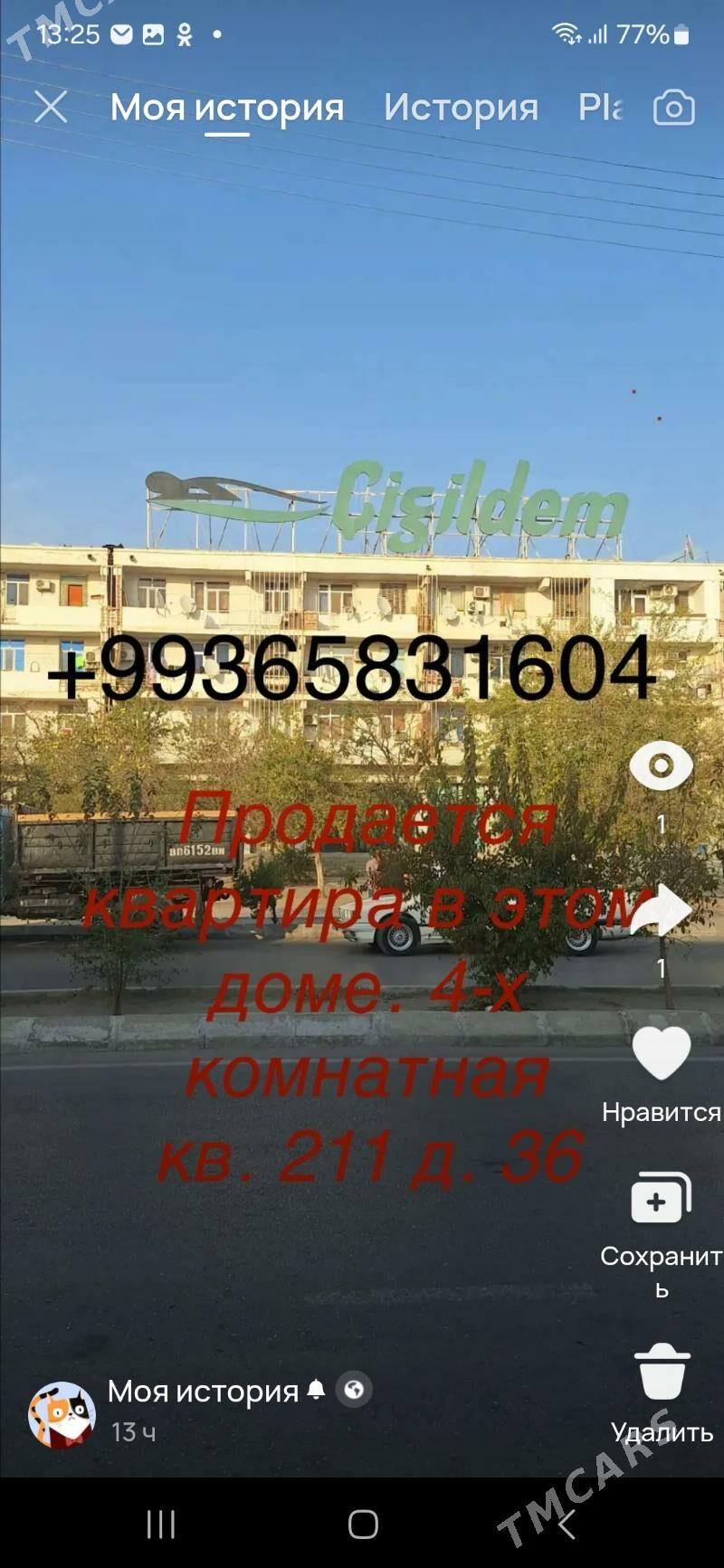 şu wagtМик Бахар на против Туркментагам квартира на 4 этаже 4 х комнатная с д...