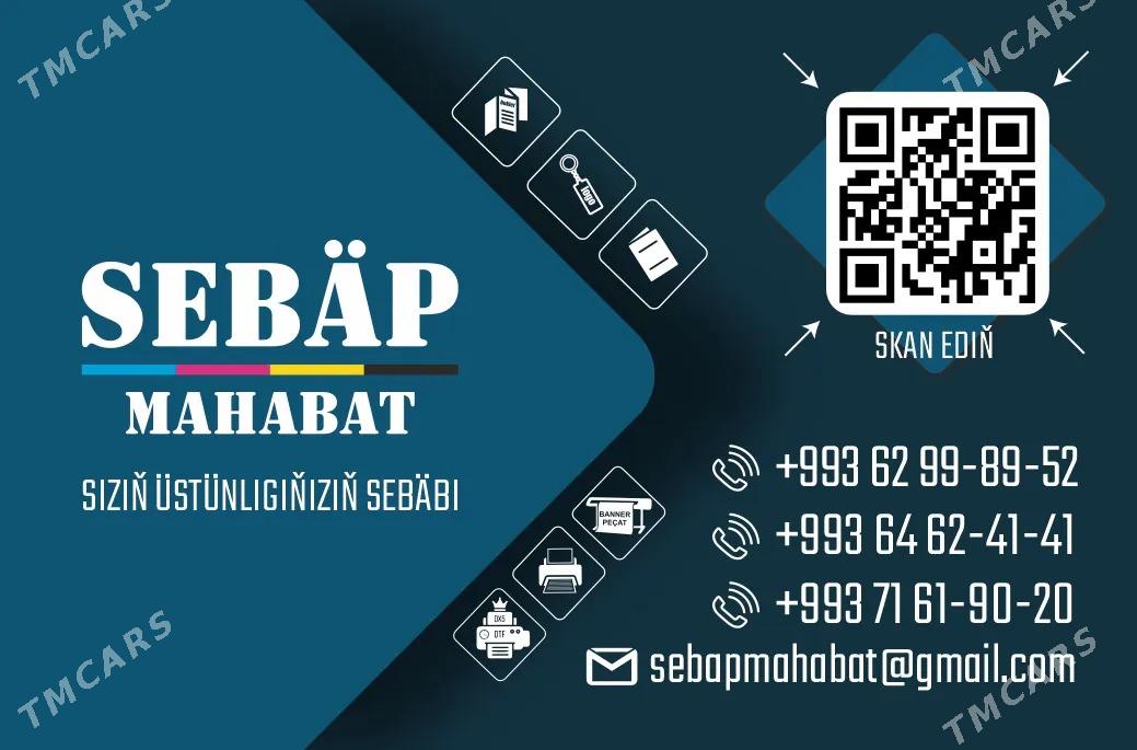 • “SEBAP MAHABAT” müşderilerimize Reklama, Mahabat işlerini, Tipografiýa, Promo sowgatlyklary we  başgada ençeme hyzmatlarymyzy hödürleýäris: