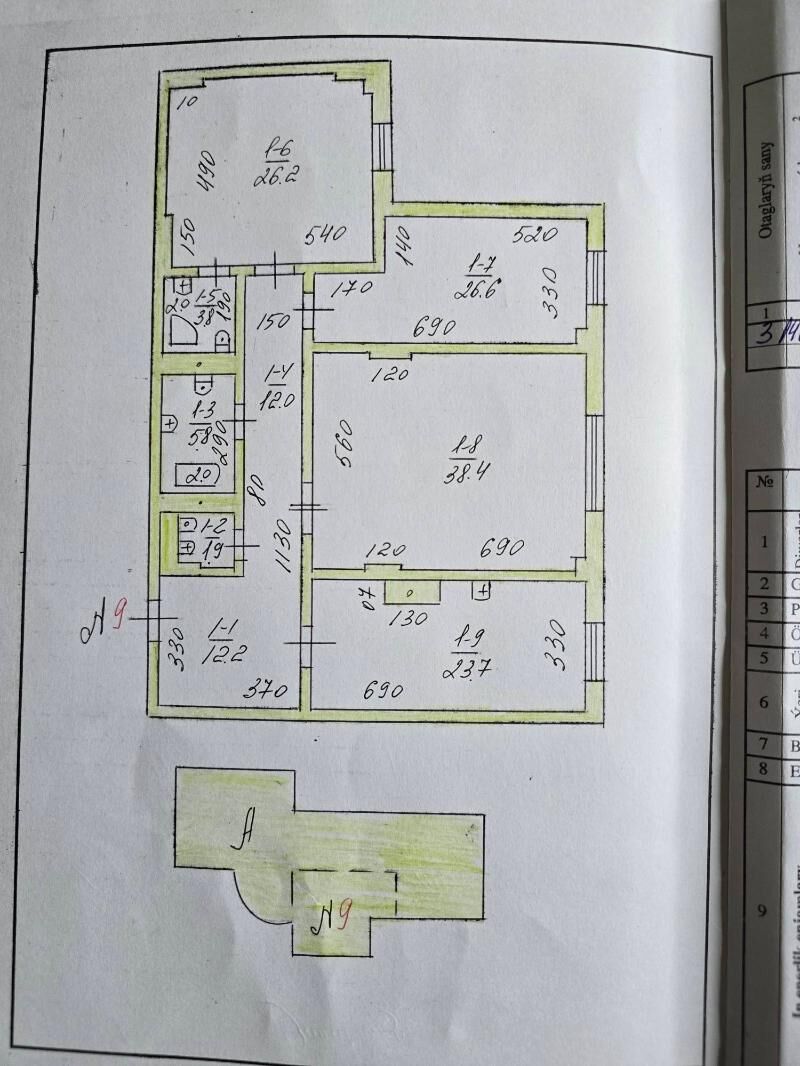 6 sag öň15 TAPGYR (KOTTEDŽ TARAP) 3 KOMNAT 190m² ARSSA REMONT 11 NJI ETAZ MINI...
