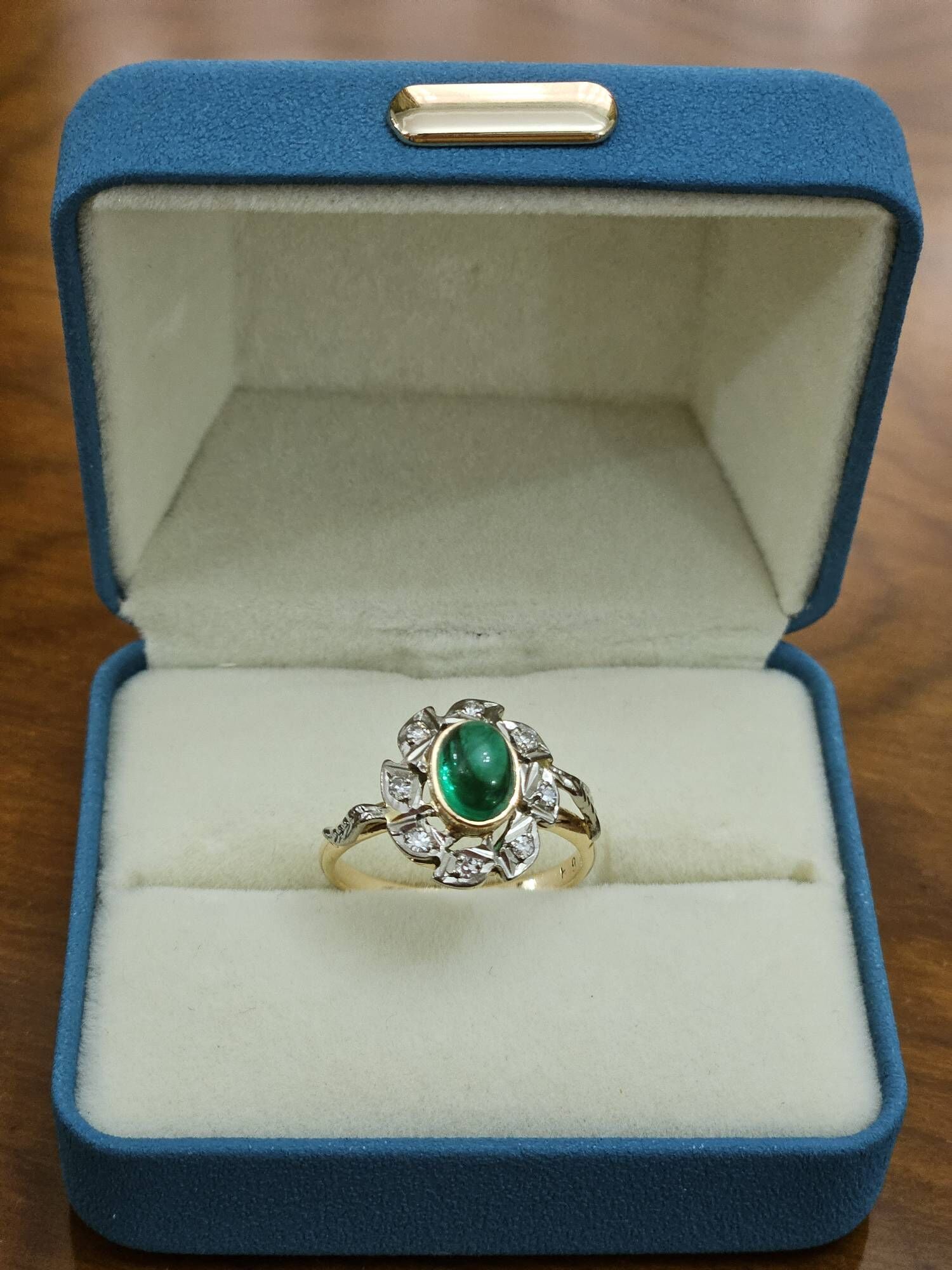 2 gün öňзолотое кольцо с наиур.изумрудом и бриллиантами проба 585* вес 2.5 гра...