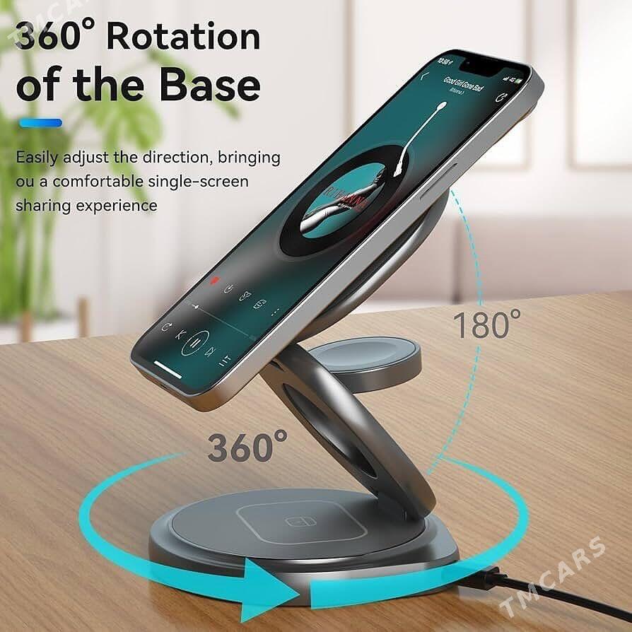 Беспроводное зарядное устройство ZGA WX05 360° Rotation and Folding 3 in 1 Magnetic 15W ️Полный каталог товаров по ссылке ниже️ mihome.com.tm Интернет магазин Доставка по Ашхабаду и велаятам ️ZGA WX05 Вращение на 360° и складное магнитное беспроводное зарядное устройство 3 в 1 для одновременной зарядки трех устройств: идеальное решение для зарядки ️В современную цифровую эпоху крайне важно оставаться на связи и получать питание. Независимо от того, находитесь ли вы дома, в офисе или в пути, крайне важно иметь надежное и удобное решение для зарядки ваших устройств. Именно здесь на помощь приходит магнитное беспроводное зарядное устройство «три в одном», вращающееся и складывающееся на 360°. Благодаря магнитному креплению MagSafe, функциям безопасности и портативному дизайну ZGA WX05 является идеальным решением для зарядки, отвечающим всем вашим потребностям. ️Магнитные аксессуары MagSafe заряжаются безопасно: Одной из выдающихся особенностей ZGA WX05 является магнитное крепление MagSafe. Это зарядное устройство обладает сильным магнетизмом и точной совместимостью с оригинальным магнитным модулем iPhone, что обеспечивает безопасное и стабильное соединение во время зарядки. Функциональность MagSafe дает вам душевное спокойствие, зная, что ваши устройства надежно подключены и безопасно заряжаются. ️Зарядка нескольких устройств одновременно: ZGA WX05 обеспечивает удобство зарядки нескольких устройств одновременно. Благодаря дизайну 3-в-1 вы можете одновременно заряжать телефон, часы и наушники по беспроводной сети. Это устраняет необходимость в отдельном зарядном устройстве, экономя ваше время и нервы. ️Безопасность, защита, душевное спокойствие: Безопасность имеет первостепенное значение, когда дело доходит до зарядки ваших устройств. ZGA WX05 оснащен множеством защитных устройств, обеспечивающих беспроблемную зарядку. Он имеет защиту от короткого замыкания, защиту от переразряда, защиту от перенапряжения, защиту от перегрузки, защиту от перезарядки и другие функции. Эти функции безопасности защищают ваше устройство от потенциальных рисков и дают вам спокойствие даже во время зарядки в ночное время. ️Регулируемое вращение на 360° для комфортного просмотра: ZGA WX05 имеет функцию вращения на 360°, что позволяет регулировать угол зарядки по вашему желанию. Независимо от того, смотрите ли вы видео, совершаете видеозвонки или просто просматриваете веб-страницы, вы легко можете найти идеальный угол обзора для комфортного просмотра. Регулируемая функция вращения повышает удовольствие от просмотра и снижает утомляемость глаз. ️Компактный и портативный дизайн: Одним из главных преимуществ ZGA WX05 является его компактный и портативный дизайн. Это зарядное устройство имеет складной тонкий профиль, что позволяет легко переносить и хранить его. В сложенном виде его толщина составляет всего 22,6 мм, поэтому его легко положить в карман или сумку. Путешествуете ли вы, работаете или просто в пути, ZGA WX05 станет вашим надежным спутником в зарядке. ️ Не подделка и не копия, 100% оригинальный товар mihome.com.tm
