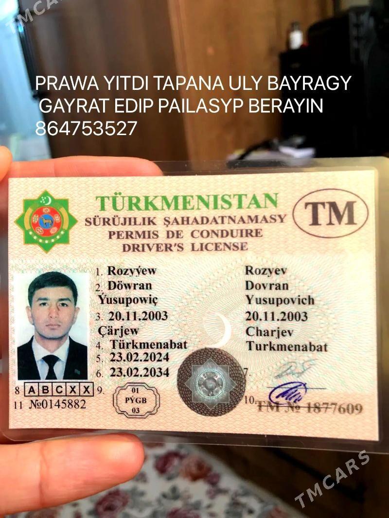 3 gün öňprawa yitdi Yagsiyew Bahtiyar Alymowic 03.06.1996 tapana 1000tmt bayra...