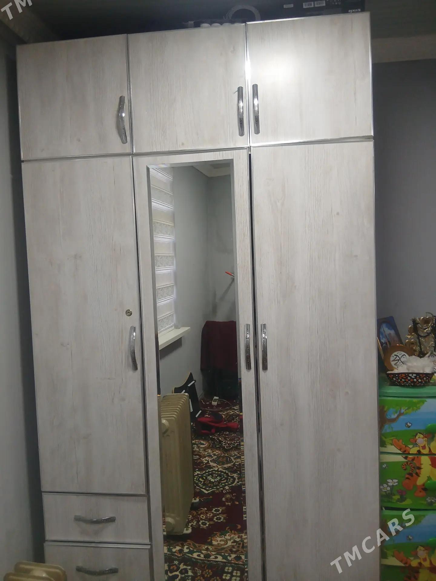 12 sag öňХороший трёхдверный шифоньер,по центру зеркало, цвет темно коричневый,...