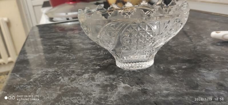 11 sag öňКонфетница из прессованного стекла и оправы из мельхиора. СССР, 1970-е...