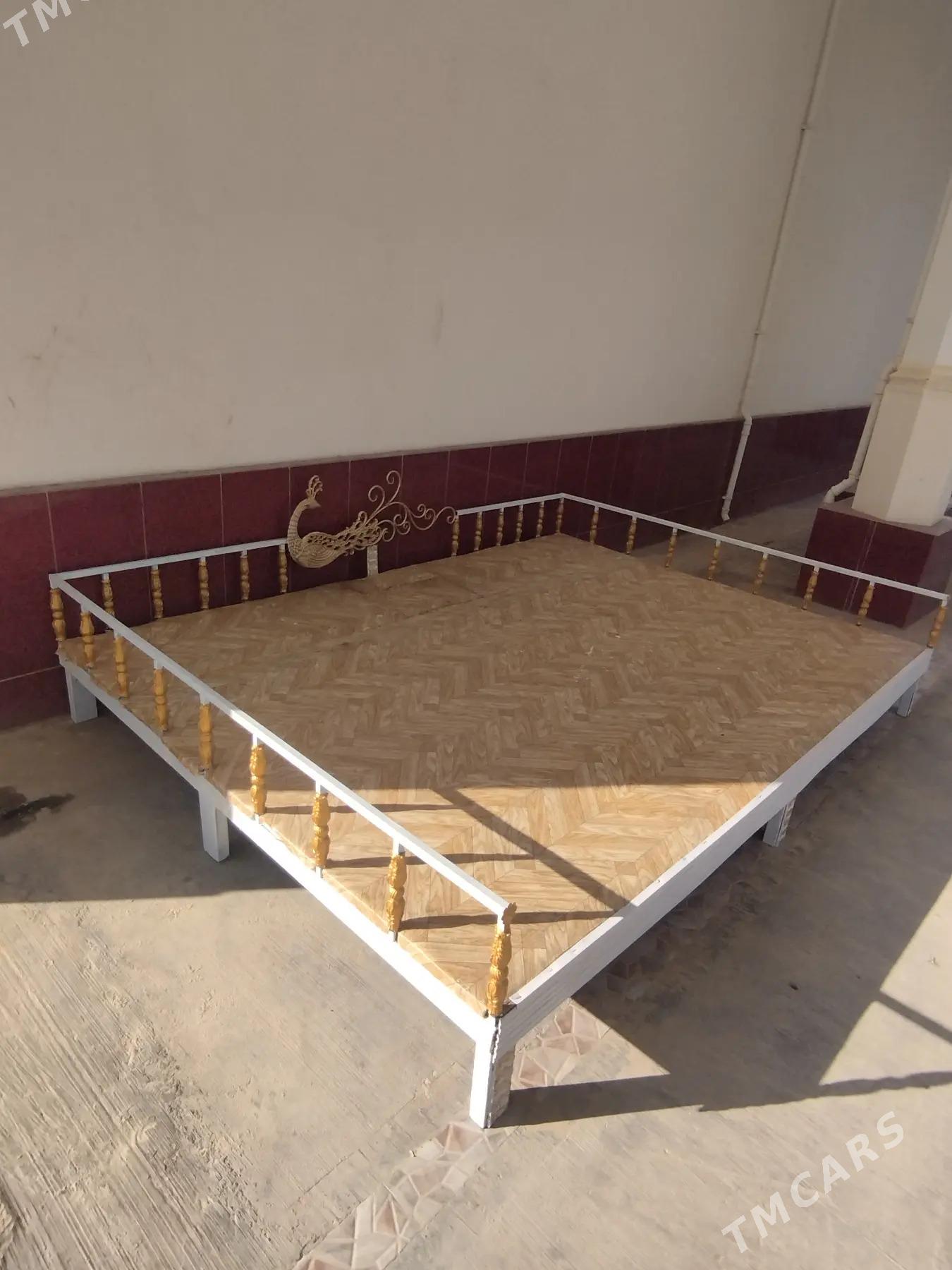 10 sag öňHowlyda goÿulÿan krowat (tapçan).Demirden ýasalan, agaçlary ýok....