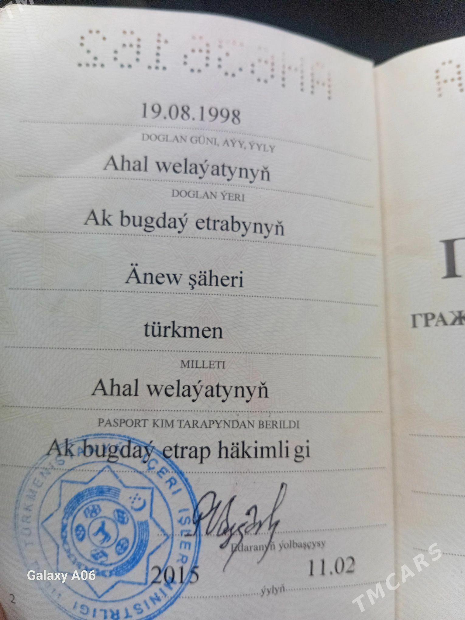düýnEyesi habarlasaysyn pasport tapyldy Amangeldiyewa Gulnabat Dasoguz Kon...