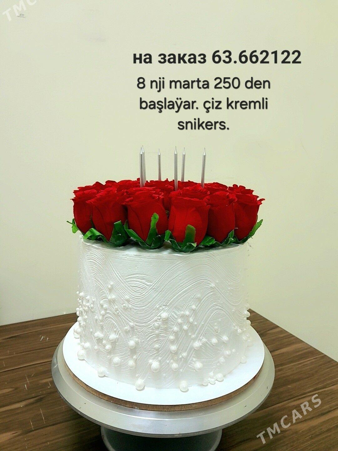 Aÿşa elin tortlary size her dùrli tort we disertleri hödürleÿar. çiz keÿk nahili görnüş diÿsen̈iz, sansibostian, iki etaz, bir etaź.islendik kremde, islendik naçinkada zakaz edip bilersin̈iz. dostawka hyzmatymyz hem bar. tortlar 200 mnt dan bașlaÿar 1500mnt çenli.