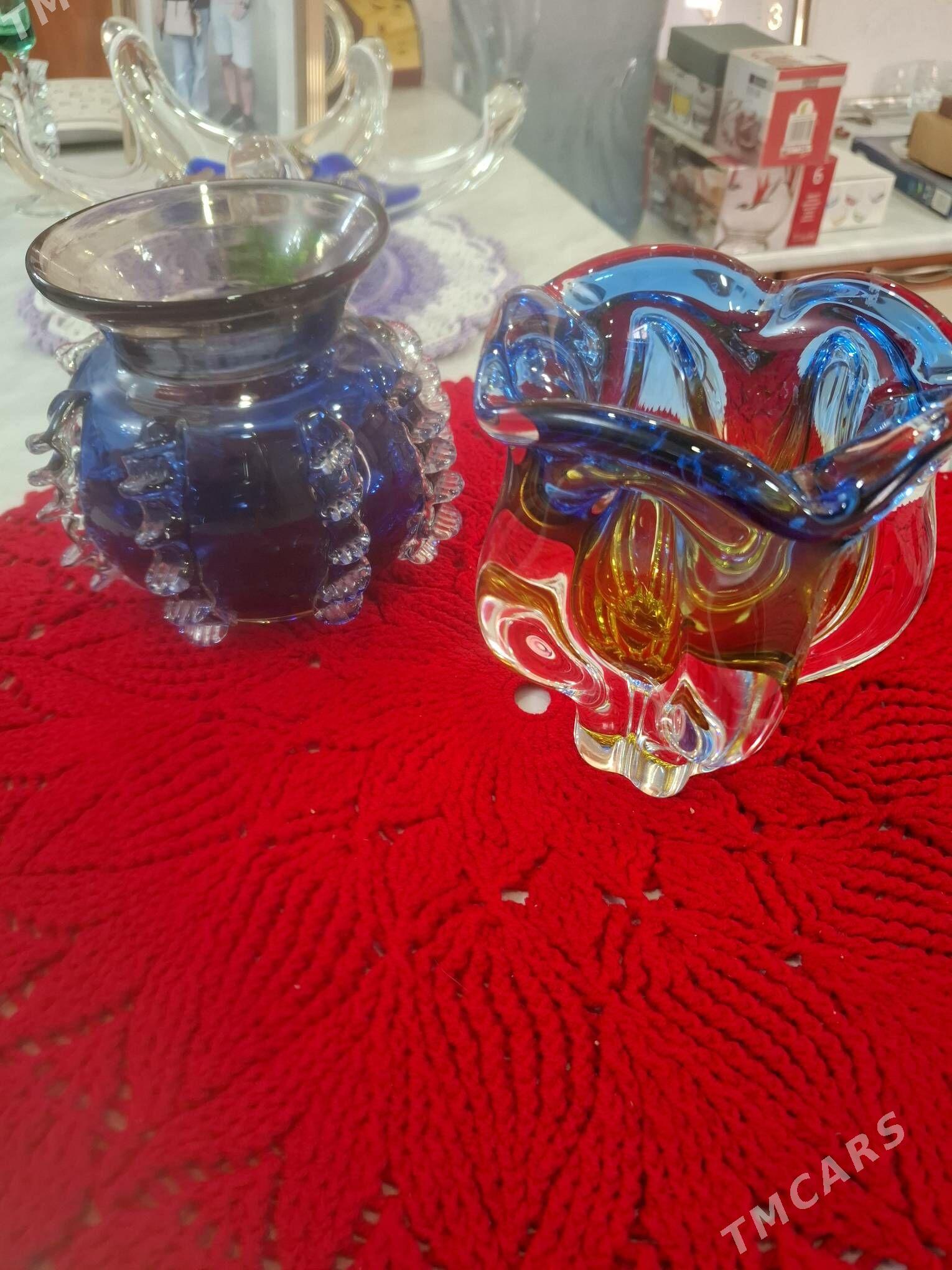 13 sag öňПОСУДА. Хрустальные вазы.1ая высота 28,5см.-350м.; 2ая 15см.- 280ман.в...