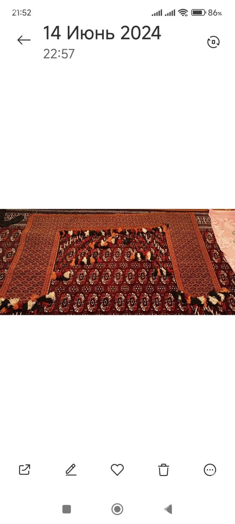2 gün öňEl haly 1-nji sort inçe dokalan artil ýüpden 100% ýüň kemçiligi ýok ar...