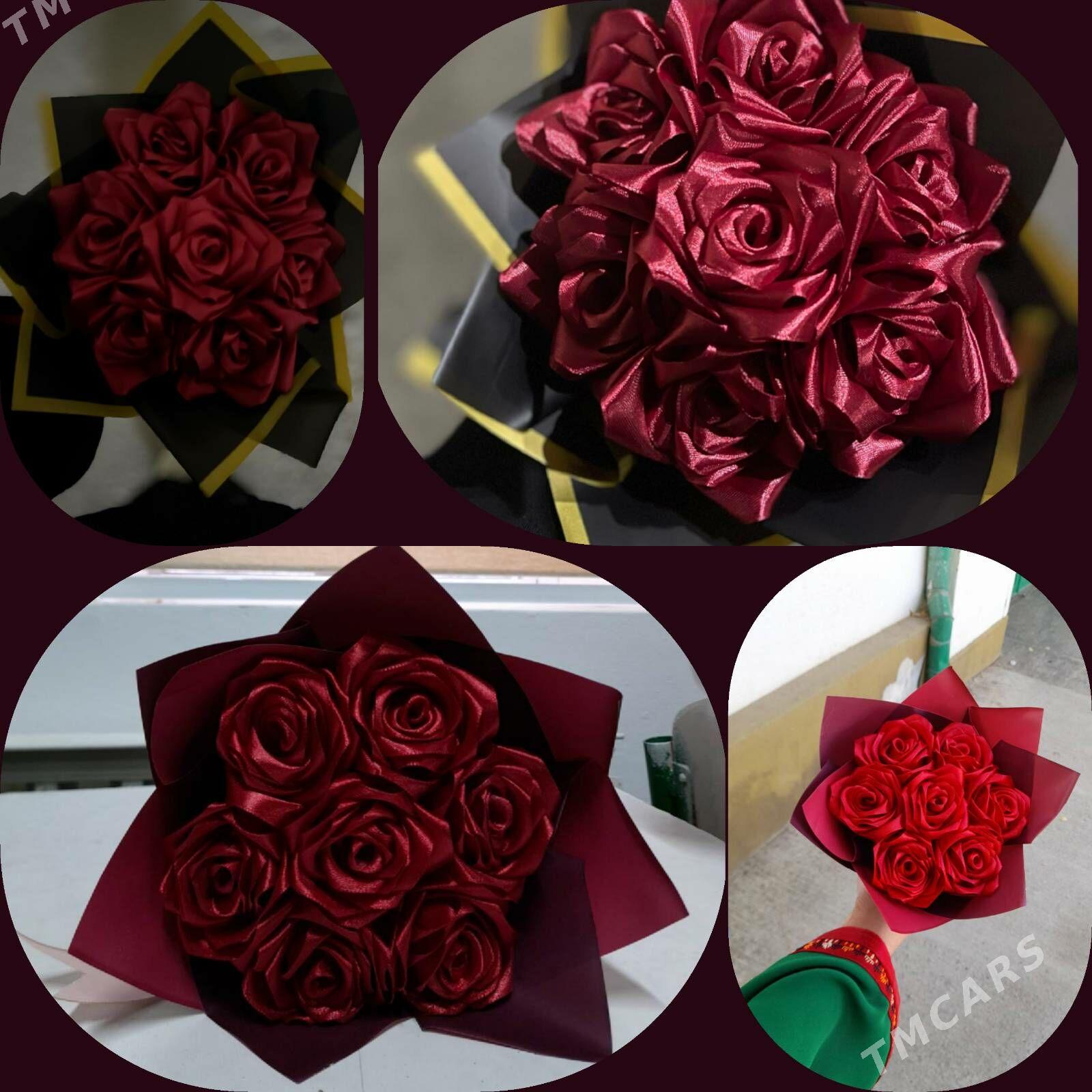 розы из атласных лент