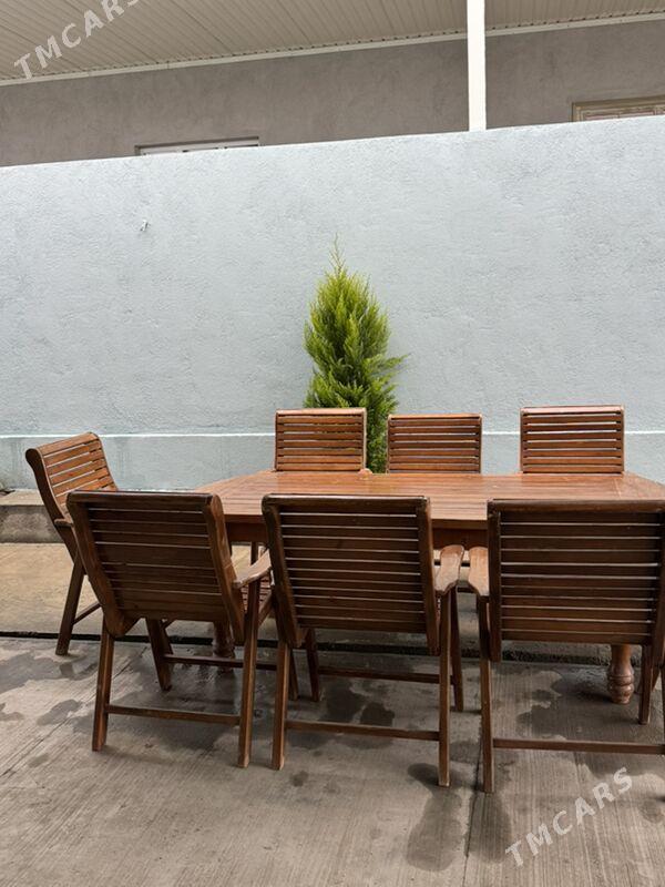 şu wagtStol stul 6 adamlyk.Razmeri uzynlygy 150sm ini 85sm gelýändir.İsleg...