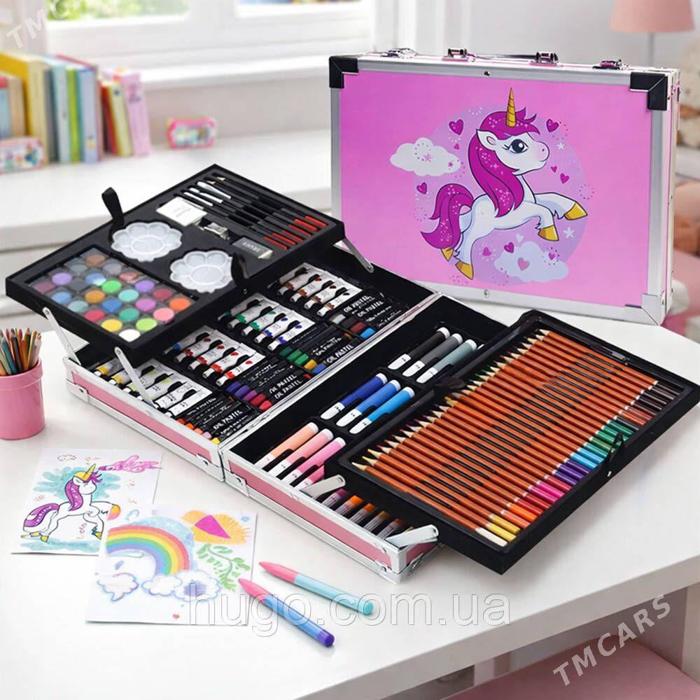 12 sag öňDaşy gaty çemodan içinde 128 predmet bar Dürli reňkde galam plomaster ...