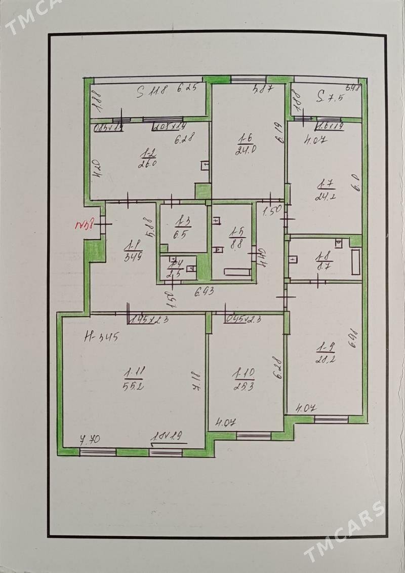 16 sag öňŞayol Elitka 12/9 2 komnat 114m² s remontom dokumenty tayyar parkowka...