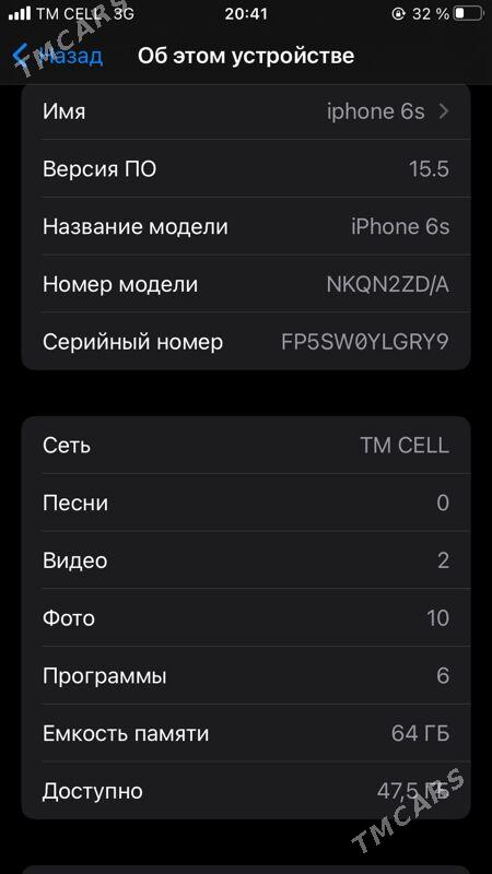 5 sag öňiphone 6s karopkasy yok zaryadnik ba. batarey çalsylan pamet 32.yomkos...