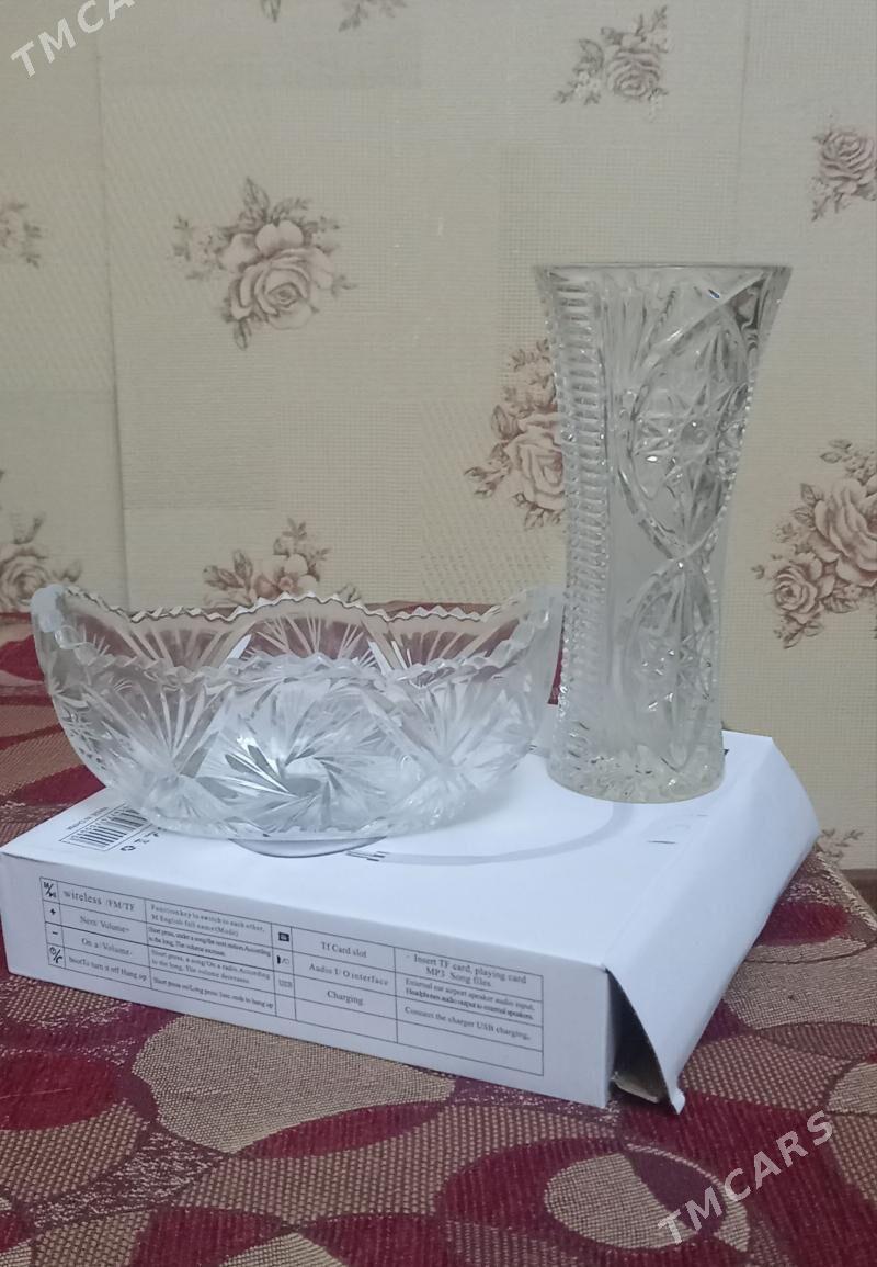 5 sag öňхрустальные 2вазы каждая по 110м ,рюмки бокалы разнобой по 20м ,писец ...