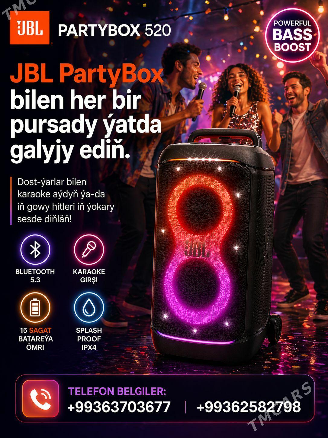 23.04.2026Uly kolonkda Jbl partybox 520. zaryady 48 sagada yetya. mikrafony bar....