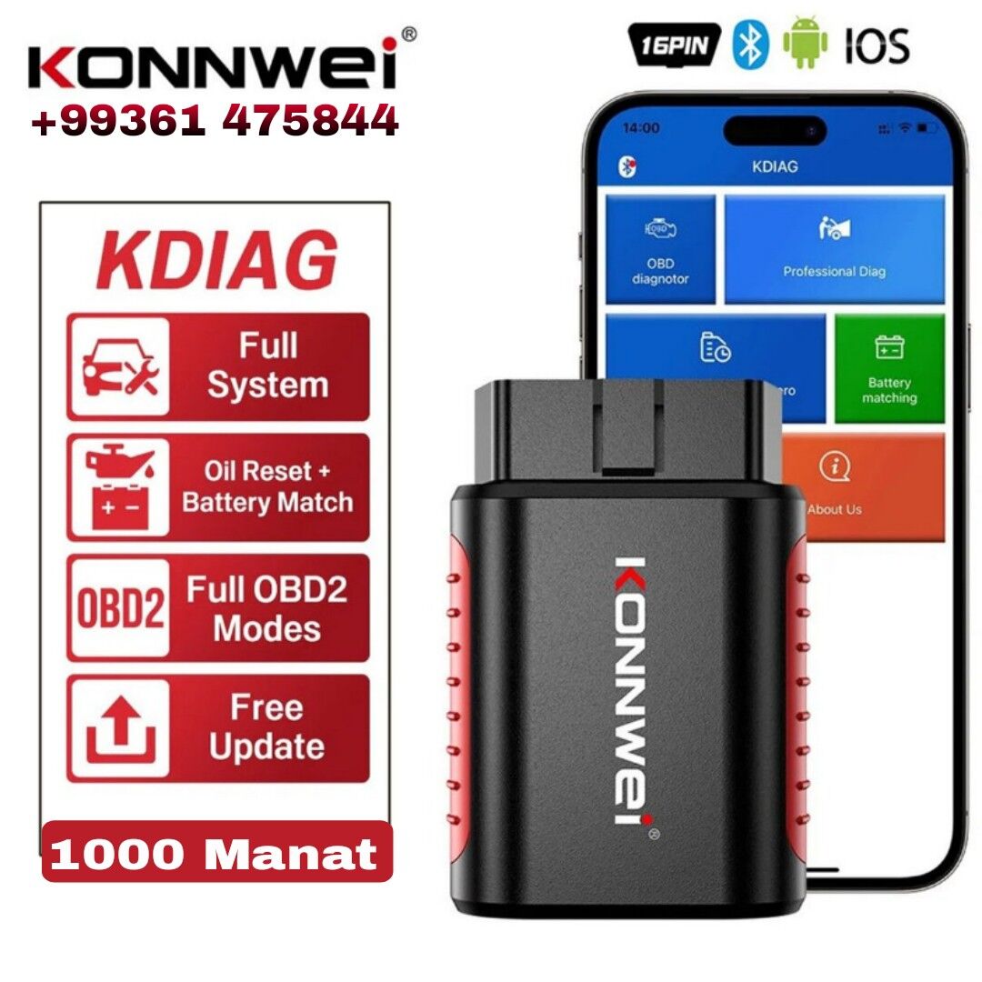 KONNWEI KDIAG Полная система диагностики сканера через бесплатное мобильное приложение KDIAG Бренд: KONNWEI 1: Универсальный автомобильный сканер OBDII для системы двигателя 2: Автомобильный сканер полной системы для более чем 40+ марок автомобилей Подключение: Бесплатное мобильное приложение через Bluetooth 5.0 для Android и iOS Мобильное приложение: Поиск приложения " KDIAG " в App Store и Google Play Описание продукта KDIAG — это универсальный автомобильный диагностический сканер obd2 для универсальных автомобилей после 1996 года. KONNWEI KDIAG Автомобильный сканер obd2 специально разработан для диагностики всех систем большинства 12-вольтовых 16-контактных транспортных средств и может диагностировать систему двигателя 12-вольтовых легковых автомобилей и легких грузовиков (неэлектрических или гибридных), выпущенных в 2005 году или выпущенных в 2005 году, которые позже были совместимы с протоколами OBD II 16-контактного разъема OBD II (J1850 VPM, J1850PWM, ISO9141, KWP 2000 и Поддерживает все универсальные функции диагностики систем автомобиля. Превращает ваше смарт-устройство в профессиональный инструмент диагностики автомобиля. Совместим с системами Android и iOS. Функция Auto-VIN поддерживает KDIAG, автоматически распознает большинство моделей автомобилей. Полный отчет о состоянии автомобиля будет автоматически создан после диагностики, отчетом можно поделиться. Поток данных в реальном времени, объединенный с графиком и записью данных, лучше подходит для мониторинга производительности автомобиля и анализа ненормальных параметров. KONNWEI KDIAG — профессиональный диагностический инструмент для механиков. 2. Диагностический инструмент KONNWEI KDIAG Full System OBD2 поддерживает диагностику всех систем, включая свет двигателя, ABS, трансмиссию, SAS, ESP, TPMS и другие системы. Оснащен множеством специальных функций, таких как сброс сервисного обслуживания масла, сброс замены TPS, очистка кода EPB (электрический стояночный тормоз), регулировка аккумулятора, DPF, SAS, кодирование форсунок, регулировка подвески и фар для более чем 39+ серий автомобилей марок Для AUDI, Для BMW, Для Lexus, Для Benz, Для Lamborghni, Для Mini, Для Rolls-Royce, Для Maybach, Для Volkswagen, Для Bentley, Для Bugatti, Для Seat, Для Skoda, Для Honda, Для Acura, Для Nissan, Для Infiniti, Для GM, Для Chevrolet, Для Buick, Для Cadillac, Для GMC, Для Pontiac, Для Saturn, Для Hummer, Для Hoden, Для Ford, Для LincoIn, Для Mercury, Для Toyota, Для Mazada, Для SUZUKI, Для SUBARU, Для MITSUBISHI, Для Hyundai, Для Avtovaz, Для Opel, Для Renault, для Dacia, для Samsung, для kia. Больше автомобилей будет добавлено в приложение немного позже. Все автомобили и все функции в приложении kdiag бесплатны, Citroen, Volga, Fiat, Jaguar, Land rover,Peugeot будут добавлены в KDIAG немного позже. 3.KDIAG поддерживает функцию AUTO-VIN одним щелчком или ручной выбор. KDIAG автоматически найдет VIN-код вашего автомобиля и сравнит его со своей базой данных, чтобы помочь вам быстро войти в диагностические системы, не выбирая по одной модели и году выпуска автомобиля. Если он не может идентифицировать информацию об автомобиле, также доступен ручной ввод и выбор. 4.Сканер неисправностей KDIAG обеспечивает пожизненное бесплатное обновление и многомодельную загрузку, даже если у вас несколько автомобилей. Если вы не уверены, поддерживает ли сканер KDIAG ваш автомобиль, вы можете связаться с нами напрямую, чтобы мы помогли вам быстро определить (некоторые специальные функции зависят от производителя автомобиля, модели и года выпуска). Если у вас есть какие-либо вопросы, вы можете связ