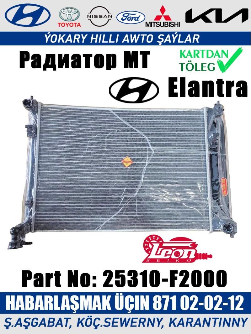 Части: Радиатор MT Part: 25310-F2000 Model: R53707 Leon Seiko For: Hyundai Elantra 15-18 1.6/2.0 ✅ Kartdan töleg 📱 +99371 02-02-12 🛍️ ş.Aşgabat, köç.Garantiýni