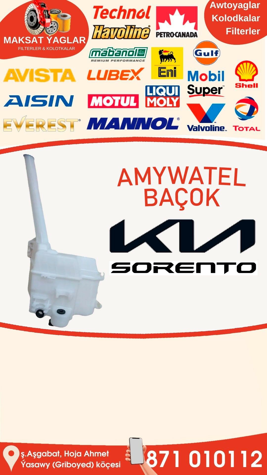 Haryt: Ayna Bacok Brend: EXPERT-H.P.T. Ulag: KIA SORENTO XM 09-14 Kody: 98620-2P500 Haryt: Расширительный бачок (Gineldiji baçok) Brend: EXPERT-H.P.T. Ulag: HYUNDAI Santa Fe 2018 HYUNDAI Palisade 2019 Kody: 25431-S1000 💳Kartdan töleg edip bilersiňiz 💁♂️ Professional konsultasiýa 👍 Hilini kepillendirýäris 🚙 Şäher içine we welaýatlara eltip bermek hyzmaty bar ⌚ Iş wagtymyz: 8:00 - 20:00 📞 Habarlaşmak üçin +99371 01-01-12 📍 Salgymyz: ş.Aşgabat, Hoja Ahmet Ýasawy (Griboyed) köçesi