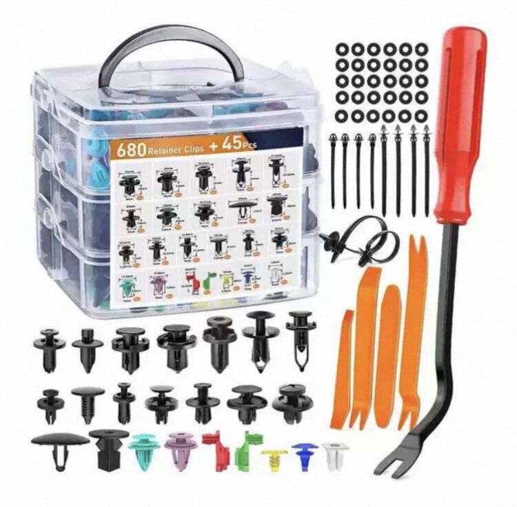 Универсальные Заклёпки для автомобиля подходят практически на все автомобили так же в наличие прилагается инструмент для поддевания заклепок и кнопок