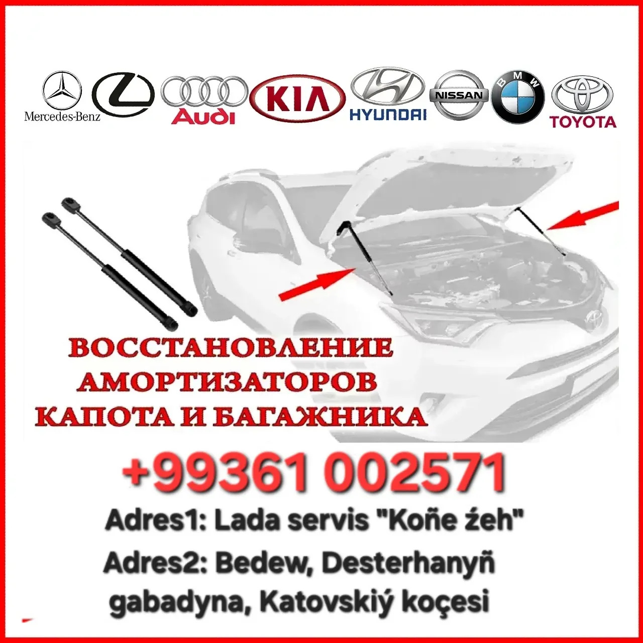 amortizator perekaçka edyaris, tokli amortizator bejeryaris, kapot we bagaź amortizatorlar perekaçka edip beryar.garantiyaly.