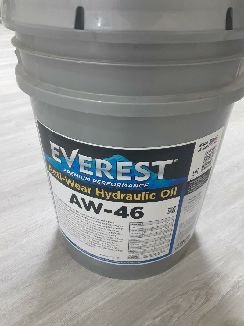 Это гидравлическое масло Everest Premium Performance Anti-Wear Hydraulic Oil AW-46. СДЕЛАНО В США ведро 18.92 литра