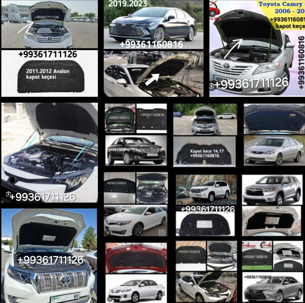 HORMATLY MÜŞDERLER BIZDE TAYOTA MAŞYNLARYÑ DÜRLI KAPOT KEÇELERI BAR. KAROLLA 2003 DEN 2007 ÇENLI KAPOT KEÇESI BAR ZAWOTSKOY WE YASAMA BAR. KAROLLA 2008 DEN 2013 ÇENLI KAPOT KEÇESI BAR ZAWOTSKOY WE YASAMA WE ARGINAL BAR. KAROLLA HALYJY 2014 DEN 2018 ÇENLI HALYJA BOLYA DINE ZAWOTSKOY BAR . KEMRI 1997 DEN 2001 CENLI ZAWOTSKOY BAR KAPOT KEÇESI. KEMRI 2002 DEN 2006 ÇENLI KAPOT KECESI ZAWOTSKOY BAR. KEMRI 2007 DEN 2011 ÇENLI KAPOT KEÇESI ARGINAL BAR.WE ARZANAM BAR YASAMA OLAM BAR. KEMRI 2011 DEN 2014 ÇENLI KAPOT KECESI ZAWOTSKOY BAR WE YASALYAN BER. KEMRI 2014 DEN 2017 ÇENLI ARGINAL BAR ZAWOTSKOY BAR KAPOT KEÇESI BAR. KEMRI 2018 DEN 2024 ÇENLI ZAWOTSKOY BAR KAPOT KECESI . AVALON 2010 DAN 2024 ÇENLI KAPOT KECESI BAR ZAWOTSKOY BAR. PRADA 2003 DEN 2019 CENLI KAPOT KEÇESI KAROLLA 2020.2024 AMERKANKA WE HALYJY KAPOT KEÇESI BAR. KAROLLA 2014 DEN 2019 ÇENLI AMERKANAK KAPOT KECESI BAR WE HALYJAM BADYR.