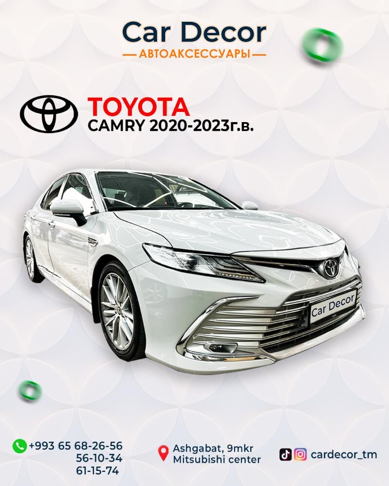 Hormatly müşderiler, biz Size Car Decor (awtobezegleri) dükanymyzda Toyota Camry 2020-2023ýý. degişli bezegleri Size hödürleýäris. Dükan salgymyz: Mir 2-däki "FOK-yñ" gabadyndaky, awtoduralgañ 1-njy gaty. Gurnama ussahanamyz: 9-njy mikraýon, "Mitsubishi" sentr. Tiktok: cardecor_tm Instagram: cardecor_tm Saýt: cardecor.com.tm