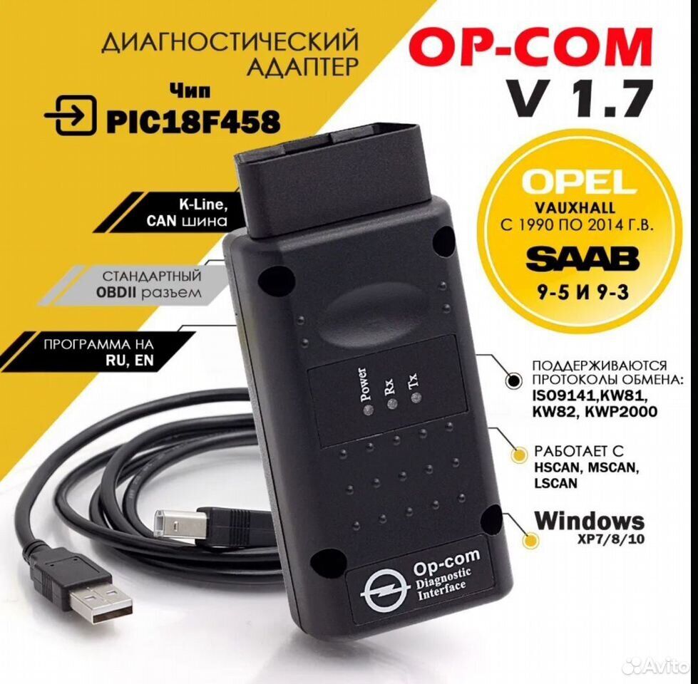 Описание Диагностический адаптер OP-COM V1.70 USB предназначен для диагностики и настройки автомобилей Opel / Vauxhall c 1993 по 2020 г.в., а также моделей SAAB 9-5 и 9-3. Не путайте данный сканер с одноразовой непрошиваимой версий 1.99, версия 1.99 это подделка! Прибор оснащен мультиплексором диагностических каналов, использующих K-line, а также модулем CAN, позволяющим использовать его для диагностики всех электронных систем самых современных моделей Opel (таких как Vectra C, Antara, Insigna), использующих диагностическую шину CAN. Работа адаптера протестирована на Windows XP, Vista и Windows 7/8 Диагностический адаптер предназначен для работы с программой OP-COM версии 100315e (08-2014) с интерфейсом на русском или английском языке. Можно утверждать, что функционально OP-COM v1.70 USB не сильно уступает дилерскому сканеру Tech-2. Приобретая данный адаптер, вы получаете в руки универсальный инструмент, который поможет выполнить многие операции самостоятельно, без обращения в автосервис. Вот примерный (но не полный) список того, что можно сделать, имея этот прибор: 1. Считать ошибки по всем электронным блокам 2. Активация бортового компьютера 3. Корректировка пробега (доступно не на всех моделях авто) 4. Контроль перегоревших ламп 5. Контроль жидкостей (шьётся не на всех машинах, надо пробовать до покупки датчиков и прочего) 6. Скандинавский свет 7. Мигающие стоп сигналы при срабатывании ABS (включается на автомобилях производства до 2007 г.) 8. Управление стеклоподъёмниками с брелка 9. Круиз-контроль 10. Зуммер оставленного ключа зажигания 11. Прошивка под нештатную магнитолу (settings на руль и прочее) 12. Синхронизация даты и часов по сигналам RDS 13. Прошивка под ксенон (ближний - дальний) 14. Система контроля потери давления в шинах (DDS): прошивка + установка кнопочной панели 15. Замена дисплея: прошивка (снятие и постановка на охранку, настройка и программирование, в том числе и дополнительных опций, например: БК) + установка дисплея 16. Прошивка под противотуманные фары 17. Убрать или вывести на дисплей предупреждение о гололёде (slippery road) на дисплеях GID до лета 2007г. (с двумя строками по расходу топлива по умолчанию) 18. Варианты включения подсветки приборов: 1 - при включении зажигания 2 - при включении габаритов 19. Увеличить или уменьшить время работы функции "дорога домой" 20. Привязать или отвязать родную магнитолу 21. Сделать отключаемой ESP 22. Прошивка под датчик дождя и света 23. Прошивка под фараомыватели 24. Прошивка штатного парктроника 25. Прошивка оригинальных ксеноновых фар с автокорректором 26. Прошивка штатного Bluetooth Перечень поддерживаемых автомобилей: • Agila B (08-09) • Agila (00-09) • Antara (10-18) • Antara (07-09) • Astra J (10-15) • Astra-F (92-02) • Astra-G (98-010) • Astra-H (04-010) • Calibra (96-99) • Campo (01-03) • Vectra-A (92-95) • Vectra-B (96-02) • Vectra-C/Signum (02-09) • Vivaro (01-09) • Meriva (03-09) • Monterey (97-99) • Movano (99-10) • Omega-B (94-03) • Captiva (07-11) • Captiva MAXX (07-09) • Combo C (01-07) • Corsa B (94-03) · Opel Corsa C (01-09) · Opel Corsa D (07-09) · Opel Frontera (97-99) · Opel Frontera B (99-03) · Opel Insignia (09) · Opel Meriva (03-09) · Opel Meriva B (10-18) · Opel Mokka (11-15) · Opel Monterey (97-99) · Opel Movano (00-09) · Opel Movano A (99-10) · Opel Movano B (10-15) · Opel Omega A (94-03) · Opel Omega-B (94-03) · Opel Sintra (97-99) · Opel Speedster/VX220 (01-09) · Opel Tigra (95-00) · Opel Tigra B (05-09) · Opel Vectra A (92-95) · Opel Vectra B (96-02) · Opel Vectra C/Signum (02-09) · Opel Vivaro (01-09) · Opel Zafira A (99-05) · Opel Zafira B (05-10) · Opel Zafira B (11-14) · Opel Zafira-C (14-15) · Opel Corsa OPC (15-18)