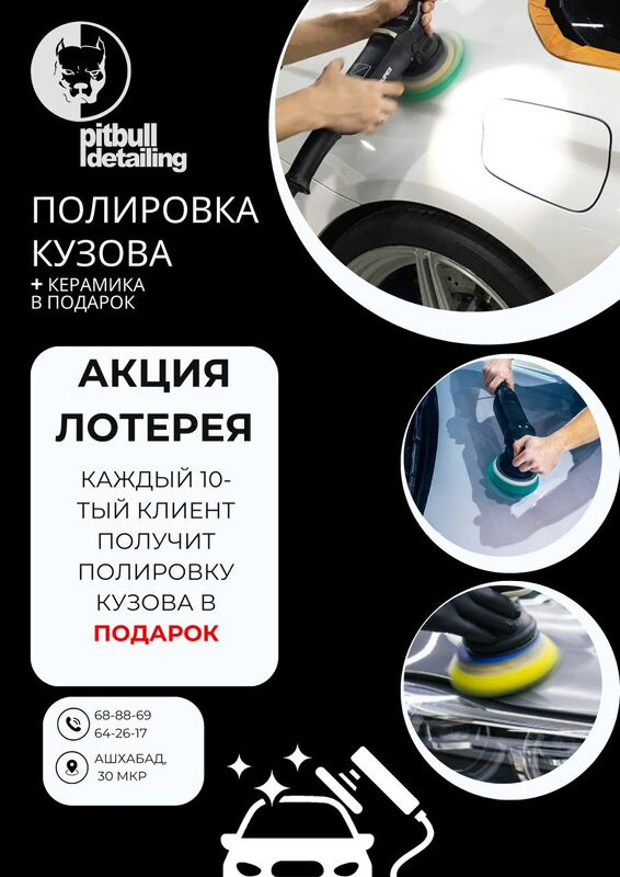 Профессиональная полировка кузова Вашего автомобиля в 3 этапа с последующим нанесением керамики в подарок. Awtoulagyňyzyň 3 tapgyrda professional polirowkasy, soňra sowgat hökmünde keramiki çalmak.