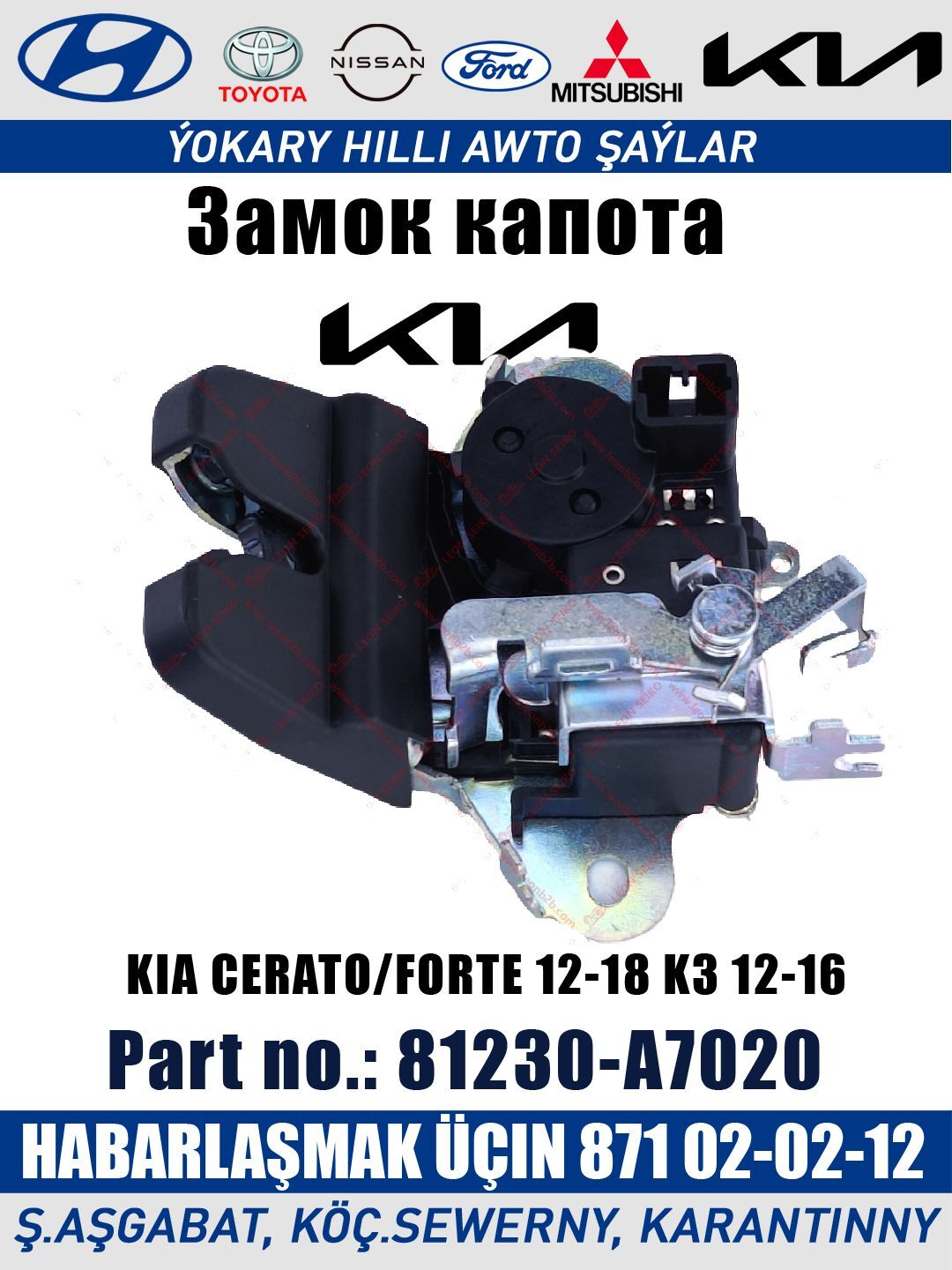 Части: Bagaj zamok Part: 81230-A7020 Model:Expert-H.P.T. For: KIA CERATO/FORTE 12-18 K3 12-16 Части: Bagaj zamok Part: 81230-2T000 Model:Expert-H.P.T. For: KIA OPTIMA/K5 TF 10-15 Части: Bagaj zamok Part: 81230-3V000 Model:Expert-H.P.T. For: HY AZERA/GRANDEUR 11-16 Части: Bagaj zamok Part: 81230-1H300 Model:Expert-H.P.T. For: KIA IX35/TUCSON LM 09-13 KIA CEED 06-12 Части: Bagaj zamok Part: 81230-2S000 Model:Expert-H.P.T. For: HY IX35/TUCSON 09-15 Части: Bagaj zamok Part: 81230-1M060 Model:Expert-H.P.T. For: KIA CERATO/FORTE 08-13 Части: Bagaj zamok Part: 81230-2W000 Model:Expert-H.P.T. For: HY SANTA FE DM 12- Части: Bagaj zamok Part: 81230-A7030 Model:Expert-H.P.T. For: HY ACCENT/SOLARIS HC 17- Части: Bagaj zamok Part: 81230-C1010 Model:Expert-H.P.T. For: HY SONATA LF 14-17 ✅ Kartdan töleg 📱 +99371 02-02-12 🛍️ ş.Aşgabat, köç.Garantiýni