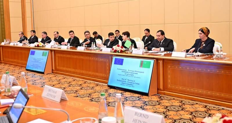 7 ноября 2025 года в Ашхабаде состоялось 24-е заседание Совместного комитета Туркменистан – Европейский Союз. Делегацию Туркменистана возглавил заместитель министра финансов и экономики Б. Ялаков, а делегацию Евросоюза — заместитель управляющего директора по вопросам Восточной Европы и Центральной Азии Европейской службы внешних связей Аудроне Перкаускене.