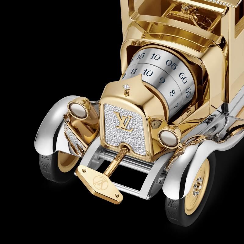 Проект реализован мануфактурой La Fabrique du Temps Louis Vuitton совместно со швейцарским производителем L’Epée 1839. Дизайн модели весом 7 кг отсылает к стилистике фургонов Citroën B10.