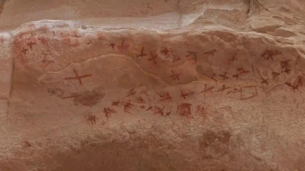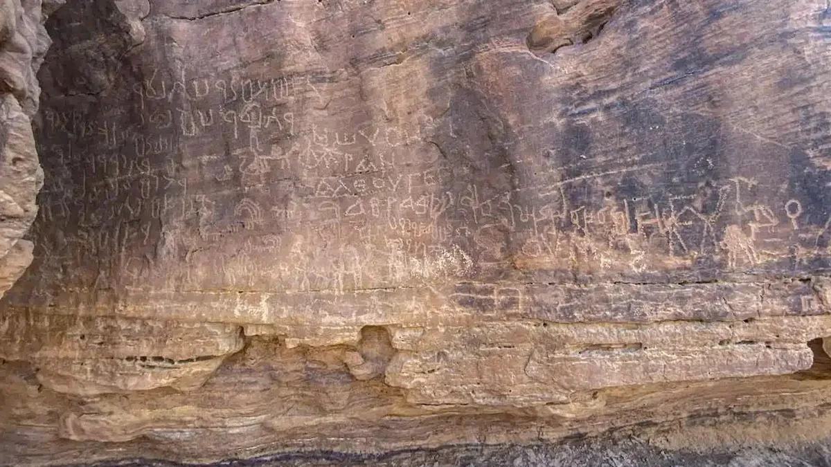 На скальном навесе длиной более 100 метров на восточном склоне плато Умм-Ирак археологи нашли изображения животных, сцены охоты, людей с оружием, а также разнообразные символы и надписи на арабском и набатейском языках. Рисунки относятся к разным периодам — от доисторических времен, 10–5,5 тысяч лет назад, до более поздних эпох.
