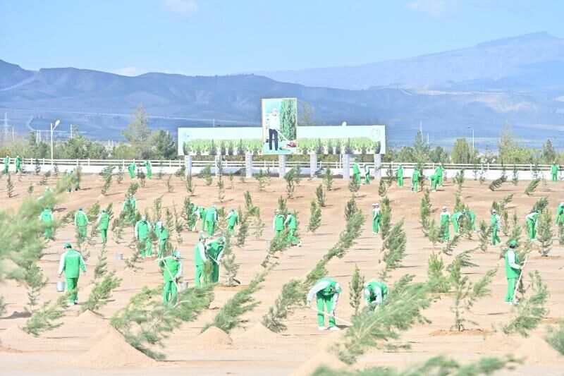 В городе Аркадаг Гурбангулы Бердымухамедов посадил саженец вместе с юным активистом, тем самым дав начало озеленительным работам. Участники мероприятия последовали его примеру.
