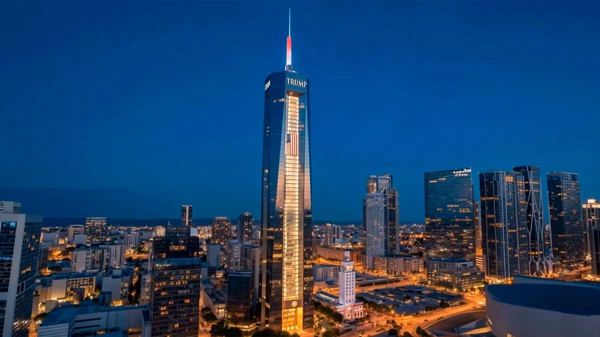 Проект предполагает строительство 50-этажного зеркального небоскрёба с входом в виде золотого портала.