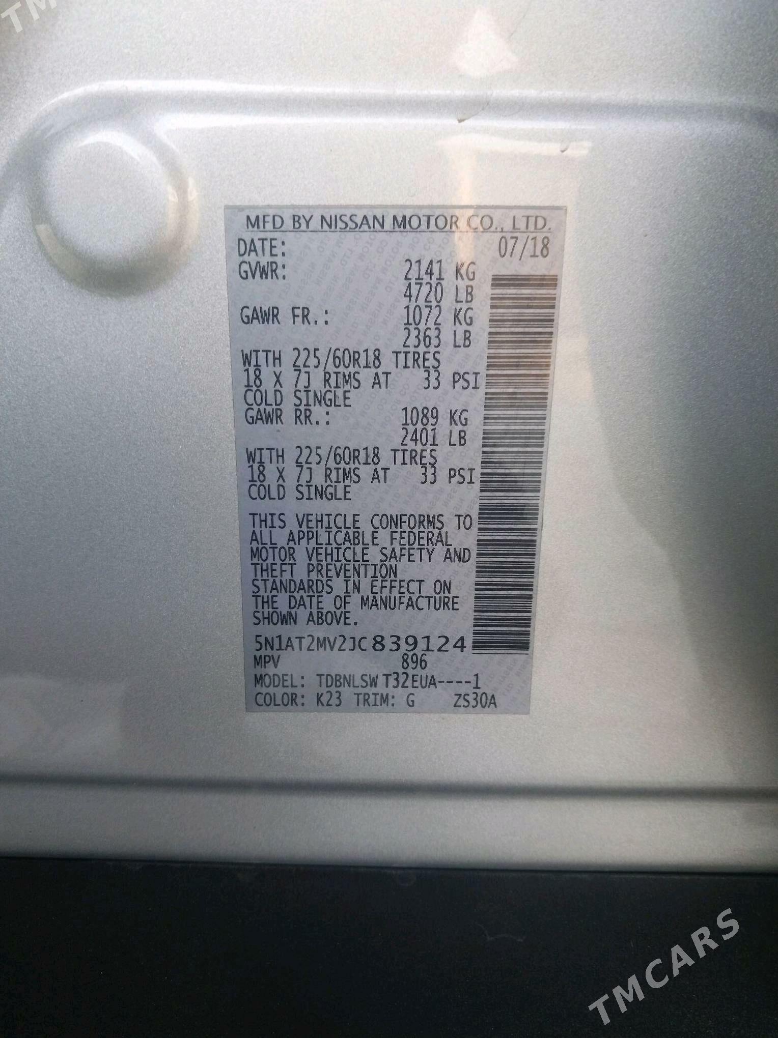 | VIN : 5N1AT2MV2JC839124 |